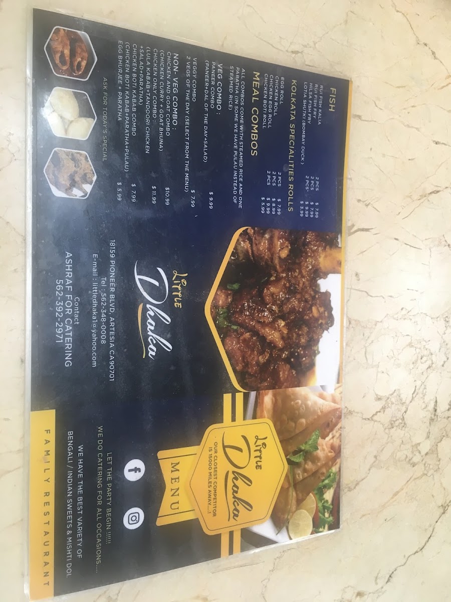 At Little Dhaka Restaurant And Grocery, you'll find an authentic taste of Bangladeshi cuisine that’s as flavorful as it is welcoming. Located in the heart of Artesia, CA, this spot is a true gem for anyone craving rich, traditional dishes made with care. The menu offers a variety of savory options, from spiced curries to tender tandoori specialties, all prepared with the finest ingredients. Whether you're in the mood for a hearty meal or a quick snack, the offerings cater to all tastes, including vegetarian and meat-lovers alike. Each dish is carefully crafted to bring out the vibrant flavors of Bangladeshi cooking, ensuring a satisfying experience every time. The grocery section further enhances your visit, offering spices and ingredients to recreate your favorite dishes at home. Enjoy the experience, where each meal is a reflection of the rich culinary heritage of Bangladesh.